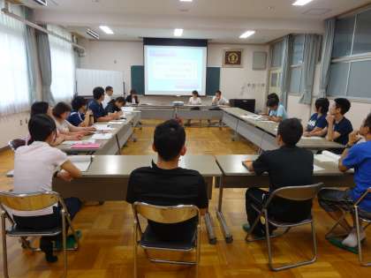 研究授業後は、討議会を開き、発問やワークシートの工夫など、より良い指導法の探求に向けて活発な意見交流を行いました。