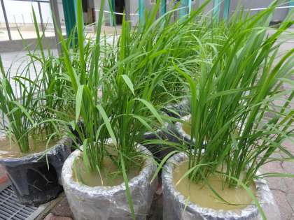 6月初旬に、地域の方から分けていただいた苗が、夏の日差しを浴びてぐんぐん成長しています。植えたときから比べると、太く、たくましく、より色濃くなった苗の色から生命力の息吹を感じています。夏休みの間、どれだけ苗が成長するのか、とても楽しみです。