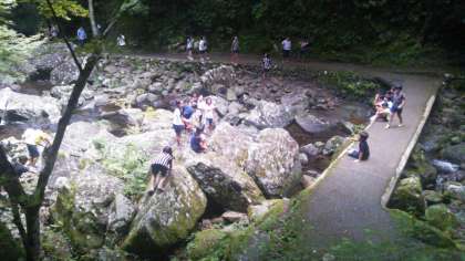 オリエンテーリング、各班とも楽しく活動を終了しました。写真は、活動を終え、川の回りで観察活動やおしゃべりで他の班を待つ子どもたち。あとはお昼ご飯の後、帰途につきます。