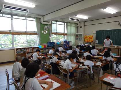 2学期から変わったことがいくつかあります。一つ目は、子どもたちの登校が、集団登校から“誘い合い登校”になったことです。1学期から準備してきたこともあり、スムーズに“誘い合い登校”をスタートすることができました。2つ目は、各教室にクーラーが設置されたことです。まだまだ暑い日が続くと予想されますが、快適な学習環境が整い、今まで以上に意欲的に学習できるようになりました。3つ目は、中庭にあった鳥小屋が撤去され、とても開放的になったことです。