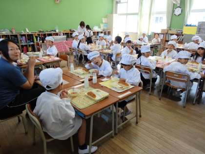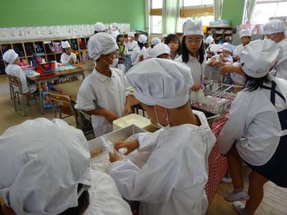 本日より給食が開始しました。どの学年も、久しぶりの給食をとても楽しみにしている様子でした。給食室から給食を運び、配膳をすませると、いよいよ楽しみな時間の始まりです。どの教室からも「いただきます!」と元気な声が聞こえてきました。