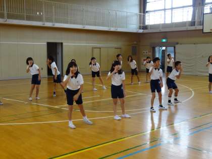 本日は、3年生の練習風景を紹介します。3年生の団体演技は、リズミカル且つ、ダンサブルな動きが取り入れられています。練習の様子を見学していると、思わずリズムを取り、手の振りを真似していました。