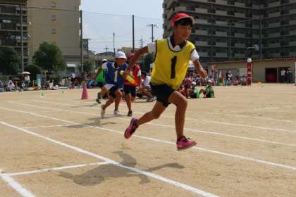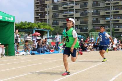 力をふりしぼって精一杯走りました!とても素晴らしい勝負になりました。また、午前の部、最後の得点競技のため、みんなの応援にも熱が入りました。