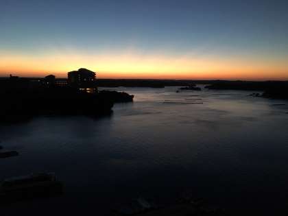 おはようございます。修学旅行二日目が間もなく始まります。ホテルから見たあご湾の夜明けです。今日も良い1日を送れそうに感じさせる、すばらしい景色です。