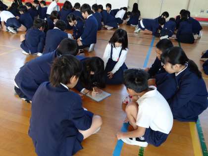 本日の児童集会は、子ども祭りに向けた取り組みを行いました。前日に行った“たてわり班”リーダー会議に参加した6年生を中心に、たてわり班ごとに集まり、それぞれの班がメンバーの確認をしたりお店を回る順番を決めたりしました。