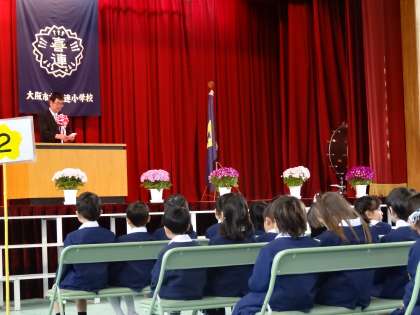 入学式では、二井校長先生のお話やPTA会長からのお話がありました。また、担任の先生の紹介も行いました。最初は緊張していた様子の新1年生でしたが、新入生歓迎の催しとして、新2年生が歌ったり発表したりして学校の様子を紹介してくれたので、緊張もほぐれ新しく始まる学校生活に意欲満々の様子でした。