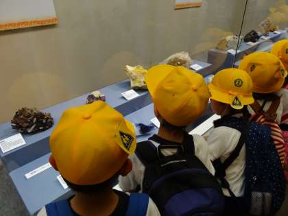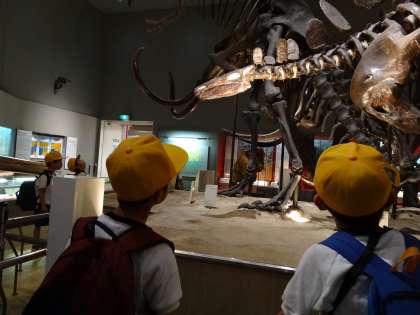 1年生は、春の遠足で長居公園に行ってきました。大阪市立自然史博物館では、迫力のある恐竜の展示に「すごーい」「大きい!」など感嘆の声が上がっていました。また、特別展「石は地球のワンダー」も見学しました。地球の営みによってつくられた、きれいな結晶を持つ鉱物や、生物の進化を教えてくれる化石を見て、子どもたちは「これ全部本物ですか」と目を輝かせていました。