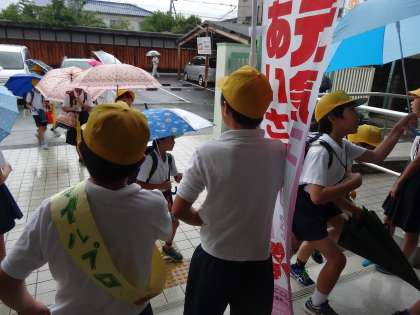 4日(火)〜6日(木)までの3日間、代表委員によるスマイルプロジェクトを行っています。今月は各委員会によるあいさつ運動が行われないため、1学期としては最後のスマイルプロジェクトになります。子どもたちは、雨で天候がすぐれないにもかかわらず、笑顔で、元気よく、大きな声で「おはようございます!」とあいさつしていました。最終日も、笑顔いっぱいのスマイルプロジェクトにしていきたいです。