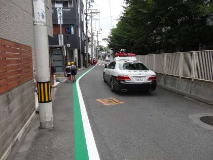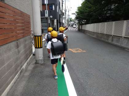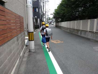 昨日もお伝えしましたが、交通量の多い学校前の道路に歩道帯が設置されました。歩道帯の効果が出ているからでしょうか、車の進入スピードが心なしか緩くなったように感じます。