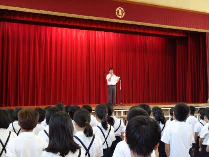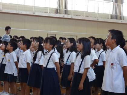 1学期の終業式を行いました。校長先生からは、夏休みの過ごし方について、その他の先生方からも夏休みの生活やプール開放についてそれぞれお話がありました。子どもたちは、これから始まる夏休みに目を輝かせながらも、姿勢を正し、最後までしっかりと話を聞きくことができました。