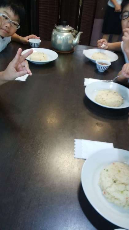 昼食の様子です。メニューはチャーハンです。オリエンテーリングは、無事終わりました。