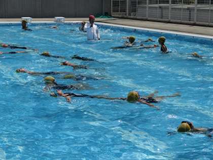 (※写真は水なれの様子です。この後、25m泳をたくさん行いました。)