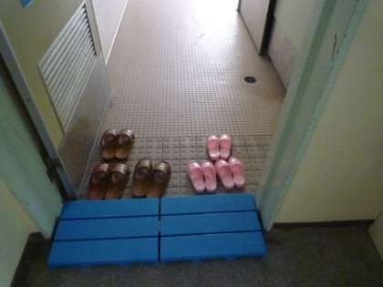 トイレの使い方が変わりました。校内の衛生面を考え、トイレの入り口で、専用のスリッパに履き替えて使用するスタイルになりました。写真では、スリッパはきれいに並んでいます。児童のみなさん、トイレは地域の方や、学校に来られたお客さんも使用されます。使い方のマナーをしっかり守って外部の方も含め、みんなが気持ちよく使えるように、使用してくださいね。それから昨日準備を手伝ってくれた、美化・健康委員会のみなさん、お手伝いありがとうございました。