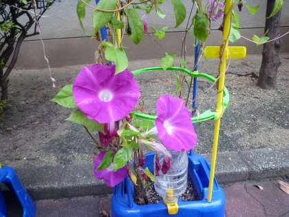 さて、10月に入り、雨上がりの朝になりましたが、朝顔はまだまだ元気に咲いております。