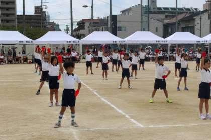 みんなの心を一つにして、隊列を揃えたり、円を作ったり、リズム感あふれるダンスを披露しました。
