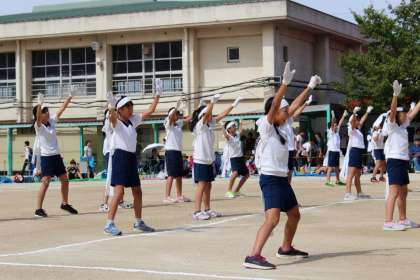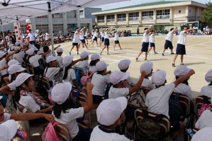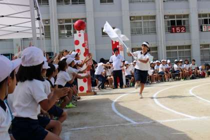 運動会、午後の部の始まりは紅白応援合戦で始まりました!応援団長を筆頭に、みんなで元気よく応援をして、運動会をさらに盛り上げました。