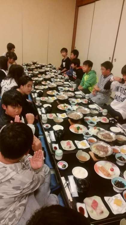 夕食風景です。おかわりする人がたくさんいました。みんな元気です。