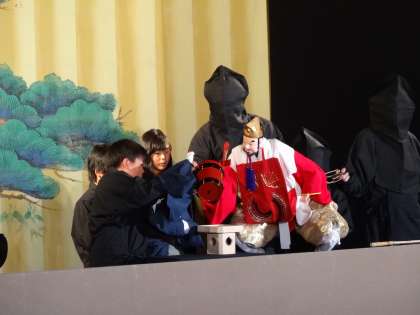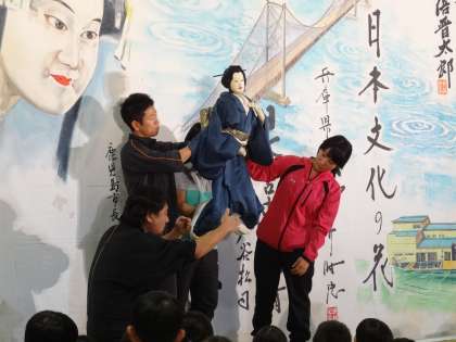 公演の最後は『本朝廿四孝 奥庭狐火の段』でした。人形や演者さんの早着替えの妙技に、みんなが感嘆の声をあげていました。日本の伝統芸能に、身近に触れるとてもよい機会になりました。