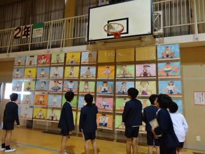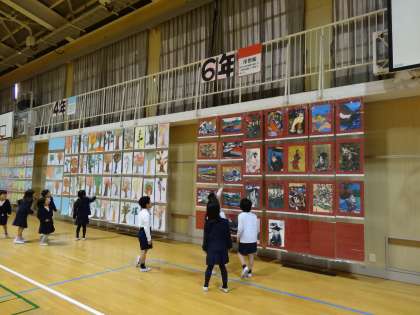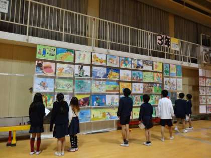 18日〜20日の土曜授業までの期間、絵画展を講堂で催しています。絵画展では、子どもたちが、自分の学年以外の絵を一斉に観ることができるので、各学年とても良い刺激になります。保護者や地域の方々も自由に観覧できますので、是非ご来校ください。