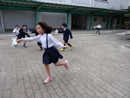 この数日寒い日が続きますが、教室の外では、1年生が生活科で作った“風ぐるま”を動かすために元気よく走っていました。子どもは“風の子”といいますが、まさにその通りです。