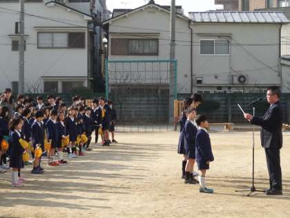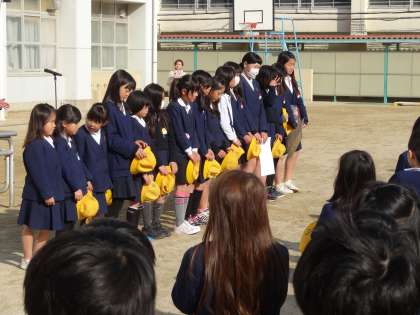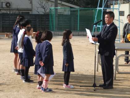 本年度最後の児童朝会を行いました。児童朝会では、絵画コンクールの表彰やキックベースボールの大会において優秀な成績をあげたことを紹介し、校長先生よりその成績を称え、表彰状が渡されました。