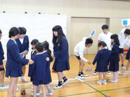 本日の児童集会は、たてわり班編成をしました。最初に6年生が「あお」と「みどり」のボードを持ち、1年生をたてわり班の場所へスムーズに案内することができました。また、その他の学年が全員移動した後、それぞれの班で自己紹介をしていきました。どの班も6年生がリーダーとして、たてわり班のメンバーをまとめている姿が印象的でした。