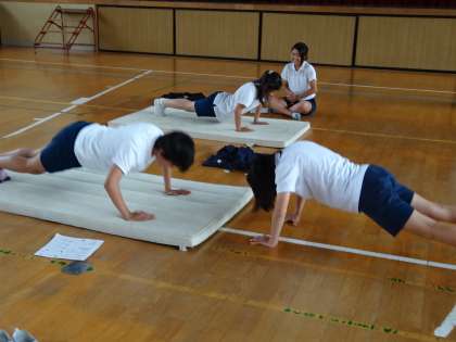 「SASUKEチャレンジ」も本日が最終日になりました。6年生も講堂で、“腕立て”と“腹筋”に挑戦しました。こちらも初級・中級・上級の3段階の設定が用意されていて、子どもたちは自分の力に合わせて挑戦していました。来週からは、スポーツテスト週間が始まります。