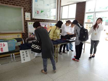 それ以外にも、PTA学級委員の方々による標準服・体操服等のリサイクル活動も行われました。たくさんの保護者の方々にはご協力いただき、ありがとうございました。