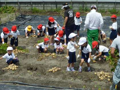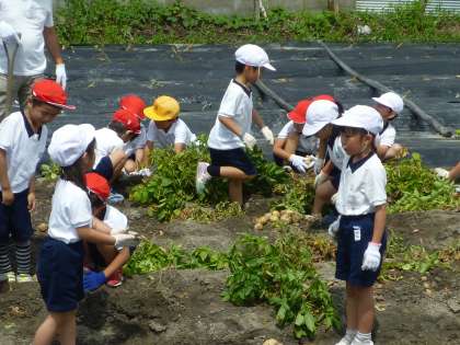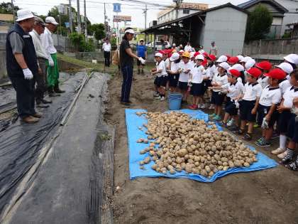 1年生が、晴天の中、地域の畑に、じゃがいもほりに行きました。暑かったけど、みんな元気にじゃがいもをたくさん掘ることができました。地域の皆様、子どもたちのために毎年、本当にありがとうございます。とてもよい経験ができました。今後ともよろしくお願いいたします。