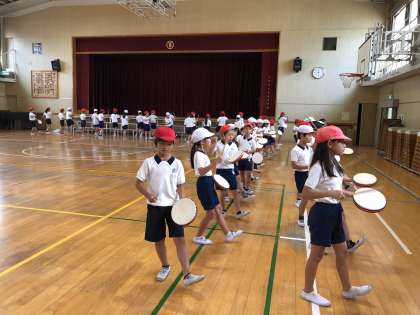 4年生は、平和学習で沖縄のことについて学習しています。その中の一つとして、エイサーに取り組んでいます。