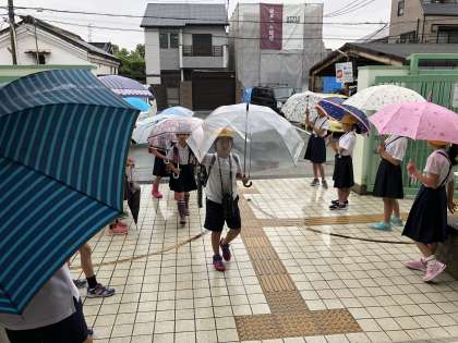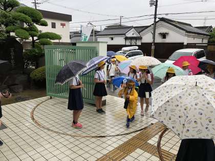 6月後半のスマイルプロジェクトの担当は、栽培委員会の児童です。登校時は雨のため、天候が悪かったのですが、大きな声であいさつを行うことができました。