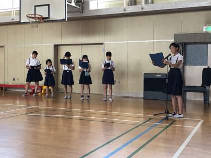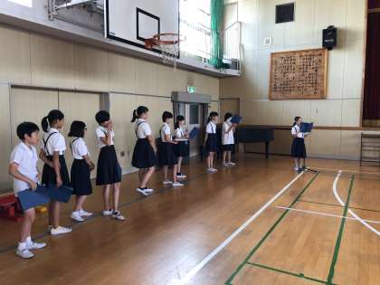 いよいよ明日に迫った平和学習に向けて、司会進行を行う運営委員会の児童が朝の時間を使って最後の練習に取り組みました。明日の平和学習には、たくさんの保護者や地域の方々にご参観いただけたらと思います。
