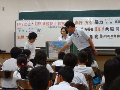 5年生は、大阪府少年サポートセンターの方々をゲストティーチャーに迎えて授業を受けました。ペープサート(紙人形劇)では、心の弱さから万引きをしてしまう子どものお話を通して、非行防止につながる大切な教訓を教えていただきました。金額の多い、少ないには関係なく、人のものを盗むことは「窃盗という犯罪」であり、家族など大切な人たちを苦しめること。見張りなど盗みを助けることは「自分が盗んでいなくても、盗んだのと同じ犯罪」であること。断る勇気が大切なこと。盗みをしようとしている友だちのことを誰かに相談することは、友だちを裏切ることでなく、友だちを助けることなどです。