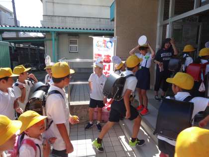 子どもたちは、新しい試みとして“スマイルレンジャー”と称して活動を行ないました。それぞれの頭上に「げ・ん・き・で・あ・い・さ・つ・を・し・よ・う」の文字が書かれた被り物をして、笑顔で、元気よく、大きな声で「おはようございます!」とあいさつしていました。最終日も、笑顔いっぱいのスマイルプロジェクトにしていきたいです。