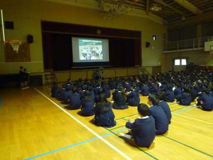 1月31日の児童集会は、クラブ発表でした。各クラブの代表がスライドの写真を見ながら説明してくれています。1・2・3年生はまだクラブに入っていないので、真剣に話を聞きスライドを見ていました。3年生は来年からですね。楽しみですね。