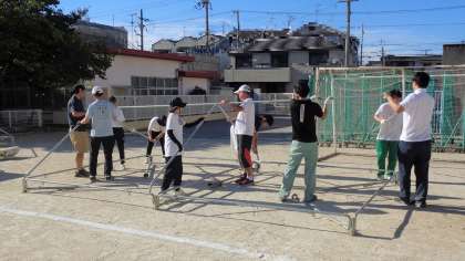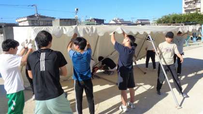 厳しい暑さの中、先生や管理作業員さんたちが、運動会練習の際の暑さ対策として、テントを張ってくれました。