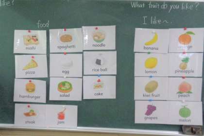 子どもたちは、やり取りを通して、たくさんの英単語に親しみます。