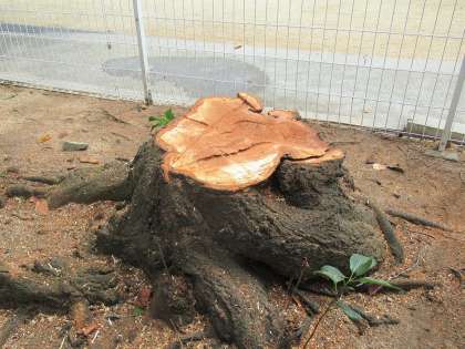 長年、入学式の撮影スポットとして、新入生とご家族の皆さまに親しまれてきた桜が、1本だけになったのはとても残念です。ご了承お願いいたします。