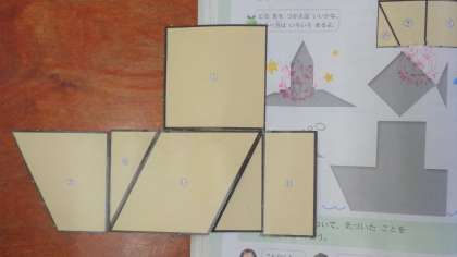 子どもたちは、いろいろなパズルを組み合わせながら、粘り強く取り組んでいました。先生のヒントもありますが、頭を悩ませていました。