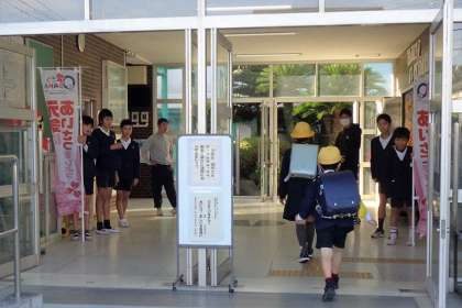 朝、玄関ホールに元気な声が響きます。
