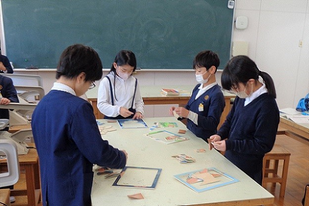 「パズルづくり」、木の板にお気に入りの絵を描きます。板を電動のこぎりで切って、ピースにします。