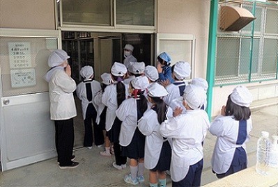 食器・おかずを受け取る際、給食調理員さんに「(おいしい給食をつくっていただき、)1年間、ありがとうございました。」と、感謝を伝えるクラスもありました。
