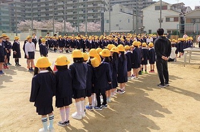 月9日の朝の時間、全校児童(2~6年生)が、新1年生を大きな拍手で迎えました。
