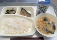 さごしのみぞれかけ、みそ汁、みずなの煮びたし、ごはん、牛乳
