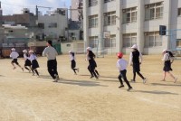 15分休みに、一番大きな外側のトラックを6年生、その内側を4年生、さらに内側を...