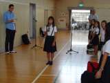本日から2日間、楽しみにしていた林間学習が始まりました。出発に先立ち、講堂で出...