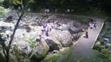 キャンプ場の隣の川で川遊び。おたまじゃくしや川がに、小魚もいました。雨も小降りに...