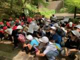 説明を聞いて、オリエンテーリングが始まります。滝のある渓谷を登って行きます。班ご...