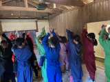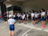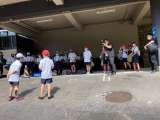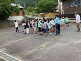 朝の会の様子です。宿舎横の駐車場で集会です。