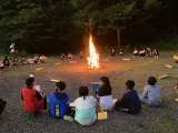 キャンプファイアーの時間です。ゲームなどで盛り上がりました。係の人が頑張っていま...